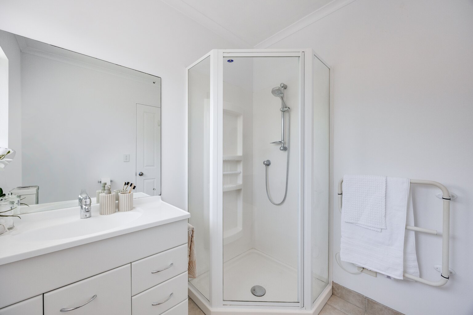 On the ground floor, a fourth bedroom with nearby facilities introduces a flexible space that suits guests, extended family, or a more independent studio-style use. A double internal access garage and additional off-street parking complete the everyday practicalities, keeping storage and arrivals comfortably resolved.